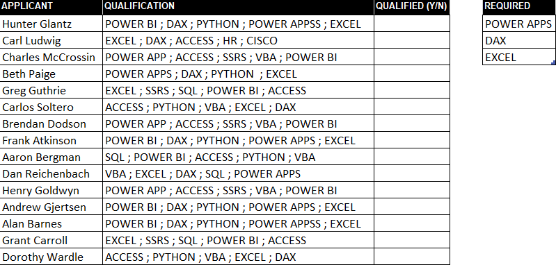 Recently a friend approached me with the below issue. How do you compare if the applicant has all the 3 required qualifications?